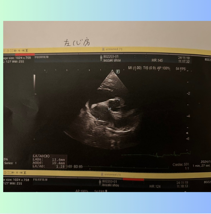おかげさまで、手術をした僧帽弁(心臓の左側)の経過は良好でした。すこーし血液の逆流はみられるものの問題ないとのことでした。