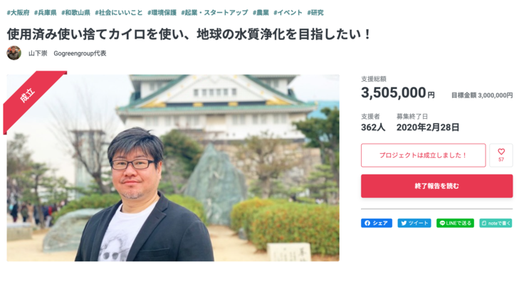 昨年のプロジェクトでは「GoGreenWater酵素水」としてリターンにもさせていただきました。