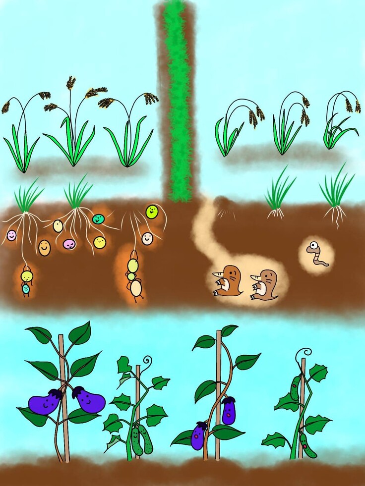 ぼくたちを 畑にすまわせて やさいやお米を 育てはじめたんだ。