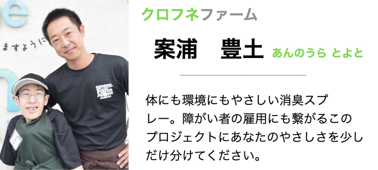 そこで、GoGreenWaterを活用した「こうそちゃん消臭スプレー」を作り、その梱包発送などの作業を就労支援に活かしてもらえば良いのではないかという発想に至り、今回挑戦することを決めました。
