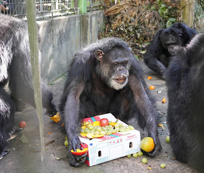 2023年9月-10月におこなった再度のクラウドファンディングの「チンパンジーたちの回復をお祝い!コース」へのご寄付へのお礼として、ショウボウの治療成功のお祝いをしました。