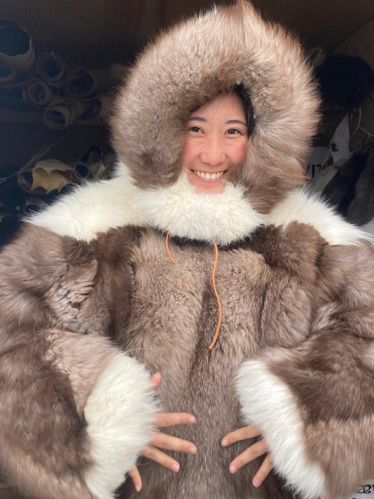 トナカイの毛皮のコート.今まで着た衣類で一番あったかかったです!