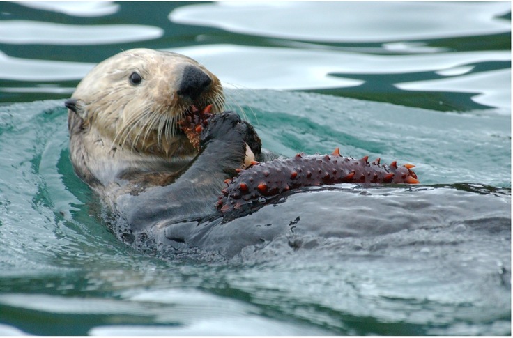 Fig. 1. Sea otter feeding on a California sea cucumber (Apostichopus californicus). Image by R. Davis taken under the authority of U.S. Fish and Wildlife Service LOC MA-043219.