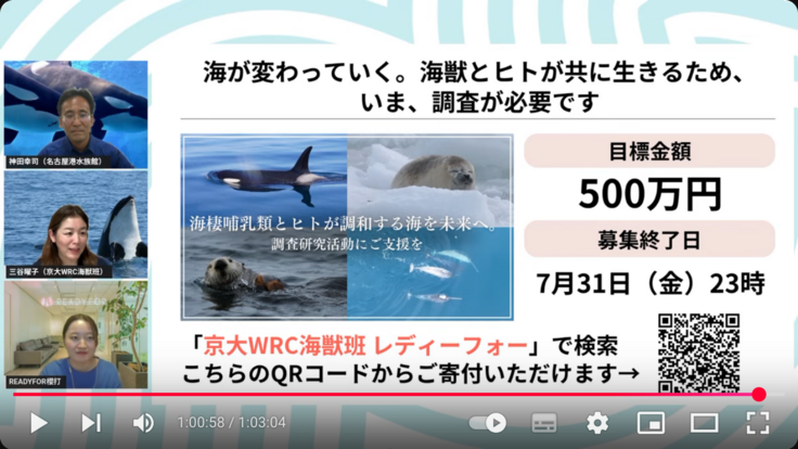 応援いただき,ありがとうございます!先ほど,名古屋港水族館のシャチ担当,神田さんとのオンライン対談,無事に終了しました!
