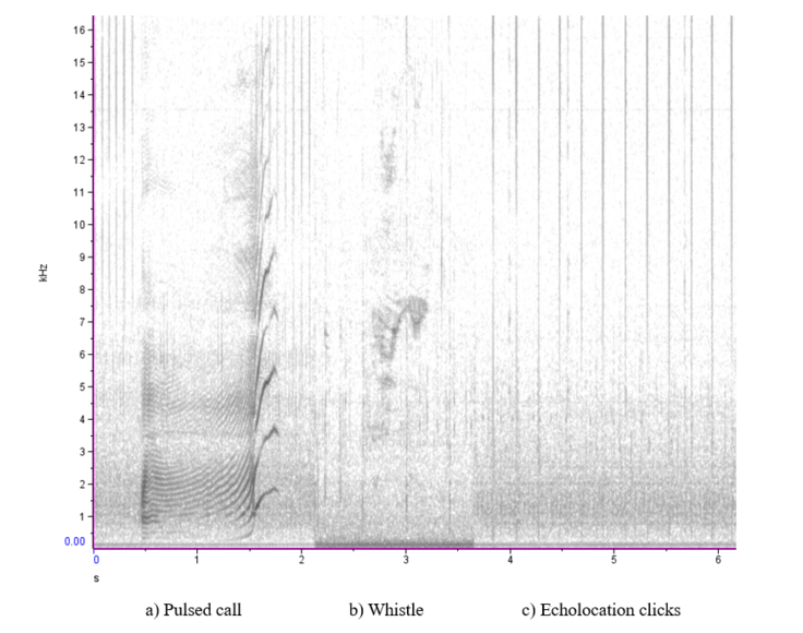 シャチのコール、ホイッスルとクリックスのスペクトログラム