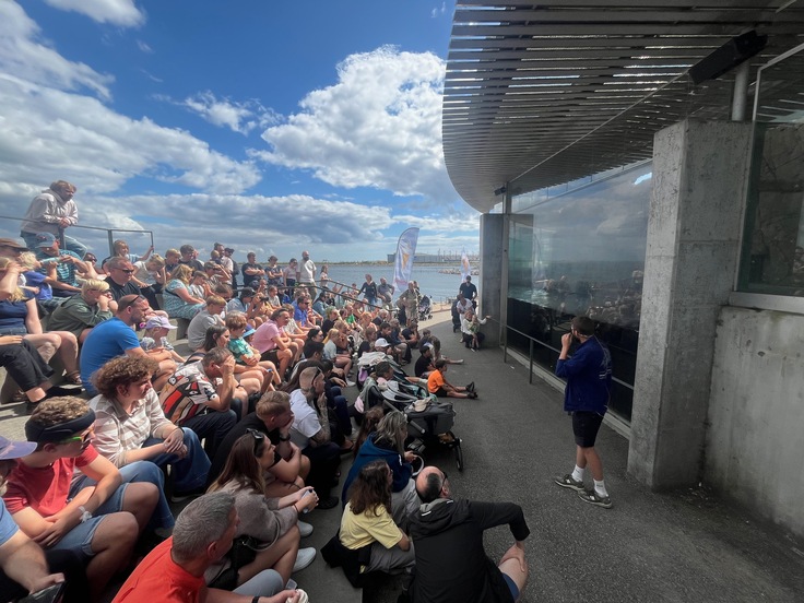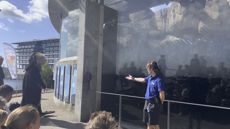 さらにしばらく見て周り、午後のラッコのトーク時間のために水槽に行くと、今度はデンマーク語と英語での解説でした。