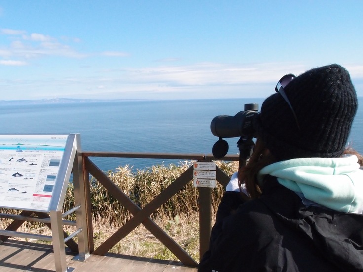 くじらの見える丘公園は陸から鯨類を観察できるとても貴重な場所です。裸眼で見つけることもできますが、双眼鏡を持ってぜひ立ち寄ってみてください。かなり辛抱強く待てば、シャチやイルカが陸から観察できるかもしれません!夏でも寒いので、防寒対策をしっかりして観察してください(防寒対策はこちらをご参考ください https://readyfor.jp/projects/ku_wrc_kw/announcements/248686)。