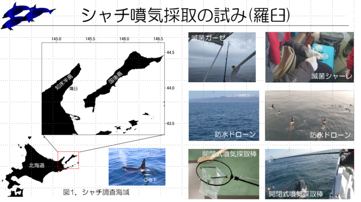 東海大学生物学部海洋生物科学科の北です。9月7日に東海大学釧路地区後援会総会が開催され、について講演してきました。当日は、釧路だけではなく羅臼からの出席者もいたことから、白シャチの話も含め、観光業として重要視される一方で、釧路における漁業被害の現状をお話し、食害を受けた魚からどのように犯人(シャチ)を見つけ出すかや、シャチがどのように漁業被害の対象とされるカレイを見つけ出しているのか、非侵襲的なサンプリング方法の検討などについてお話してきました。東海大学に子供を預ける保護者が中心の小さな会ではありましたが、シャチについて知ってもらう良い機会となりました。