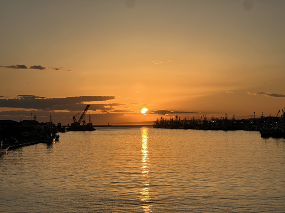 海況により,予定より1日だけ出港日が延びたので,その日は釧路市内できれいな夕日を見に行きました.