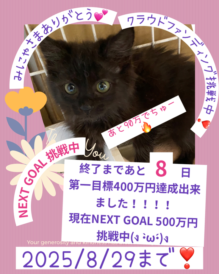 皆様の応援のおかげで、施設の修繕費である第一目標400万円は達成できました。 本当にありがとうございます。