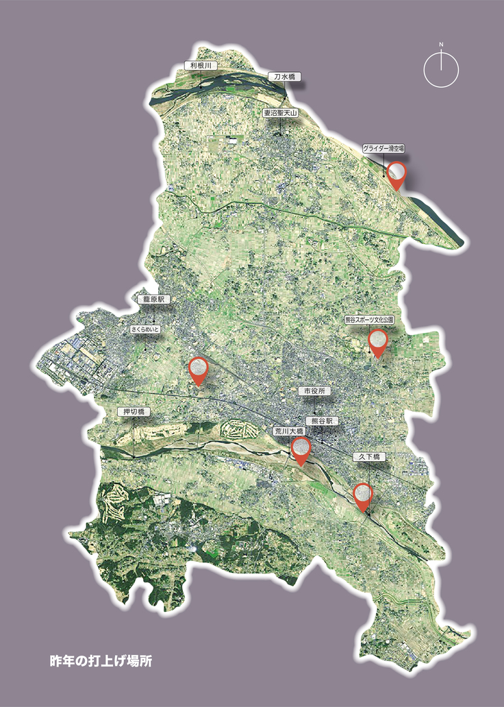 ※花火は熊谷市観光協会が委託し、許認可を保有する花火業者が打ち上げます。
