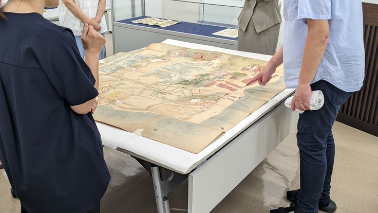 ※なお、この絵図は当館HPのオンライン貴重資料展「蘇った絵図と古文書」で公開されていますので、ご確認ください。