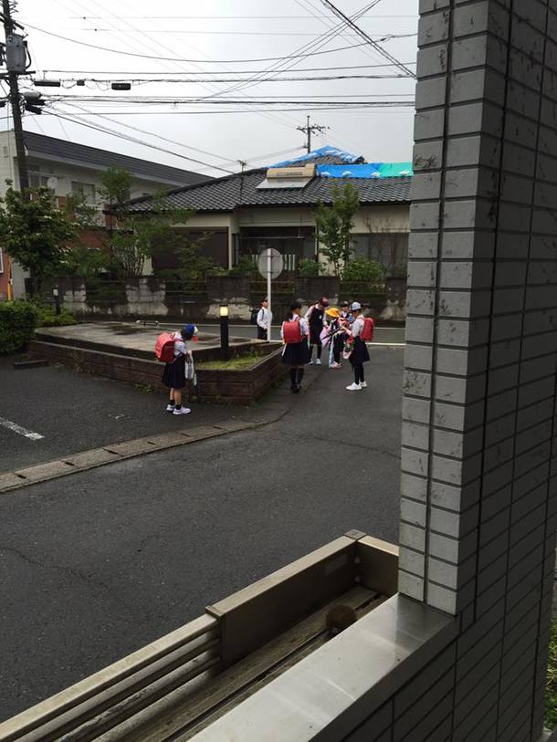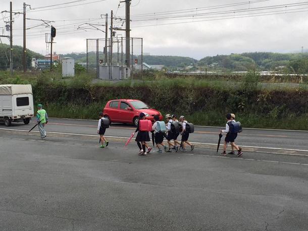 上級生のお兄ちゃん、お姉ちゃんと一緒に集団登下校をしています。
