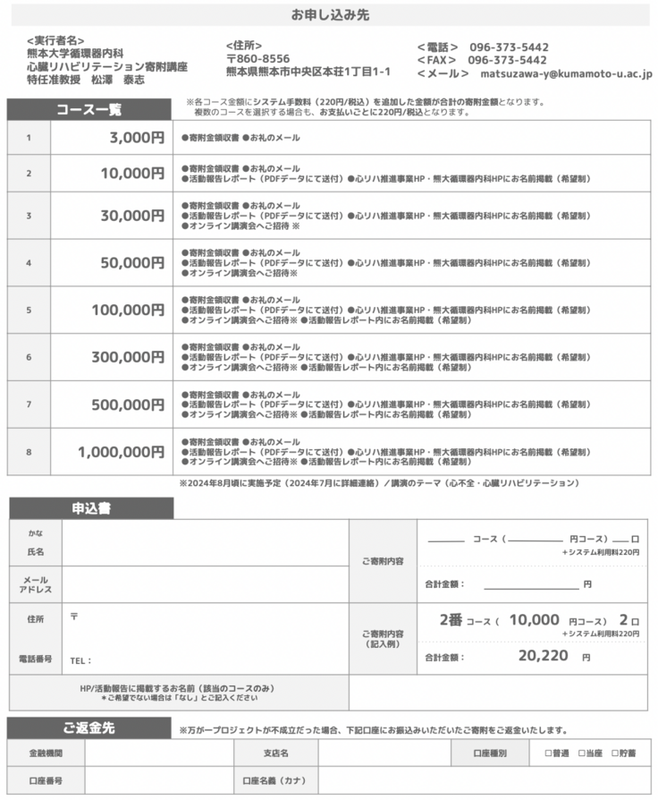 ・心リハ推進事業HP・熊大循環器内科HPにお名前掲載(希望制)
