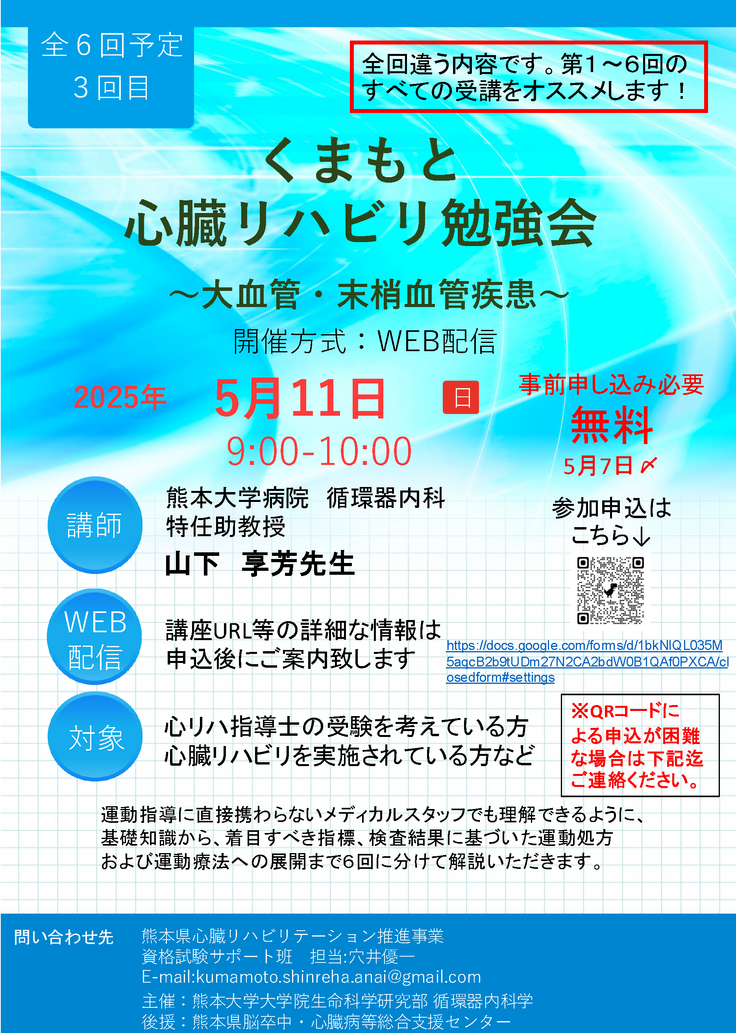 【 2025年度 第3回 くまもと心臓リハビリ勉強会開催のご案内 】