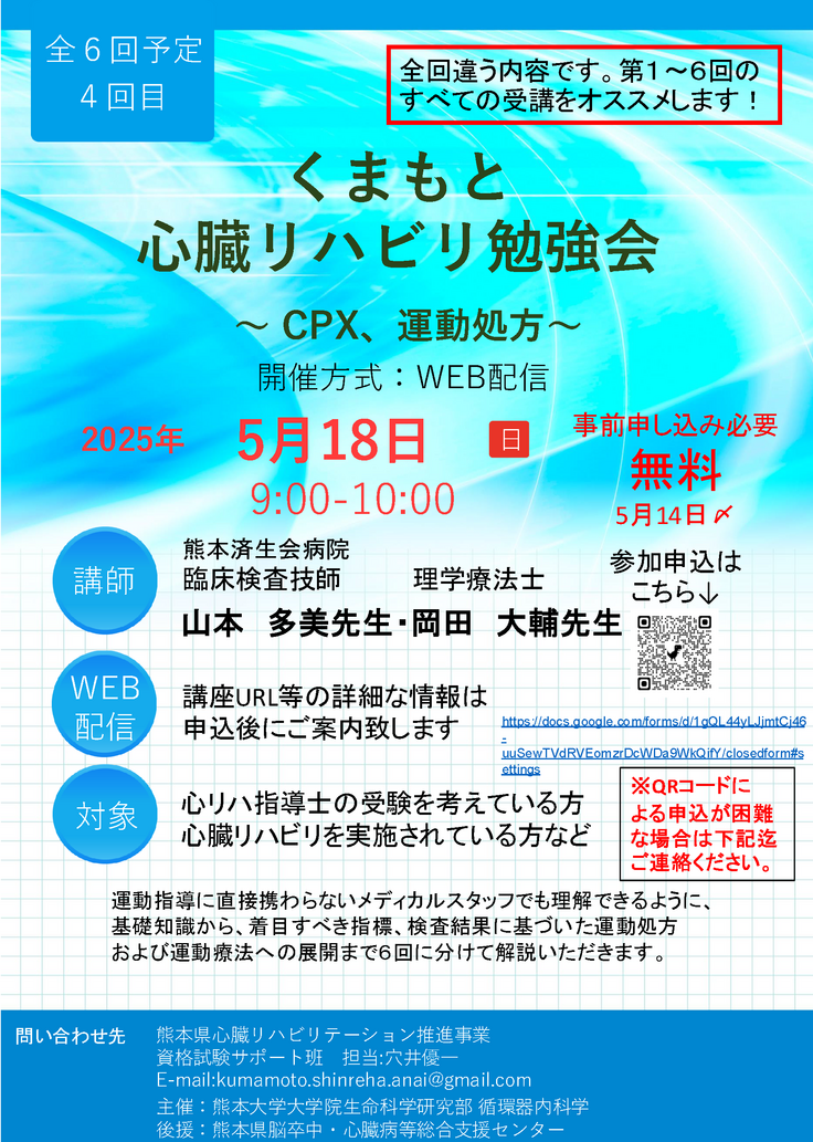 【 2025年度 第4回 くまもと心臓リハビリ勉強会開催のご案内 】