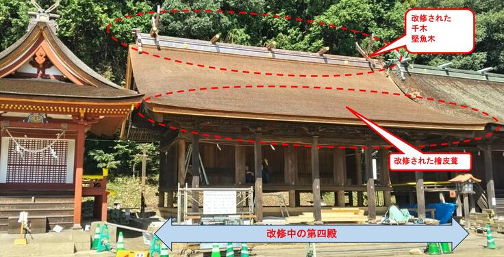 千木、堅魚木の検証と工事足場の撤去