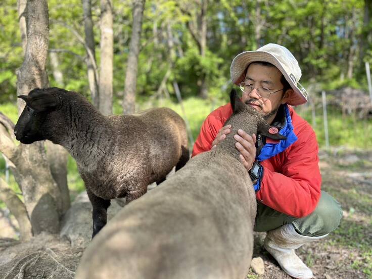 丸岡さんとの出会いがなかったら、羊を迎えることはできなかったと思います。今でも羊飼いのプロとしてたくさんのアドバイスをいただいています。丸岡さん自身も国産羊毛の普及に全力を注いでいて、とても心強い先輩です。
