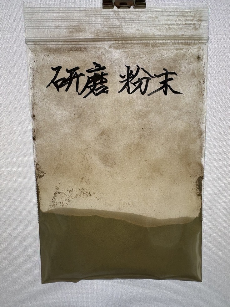 早速試作してみようと、かたな博物館の真津さんに研磨粒子のサンプルがもらえないかと依頼。
