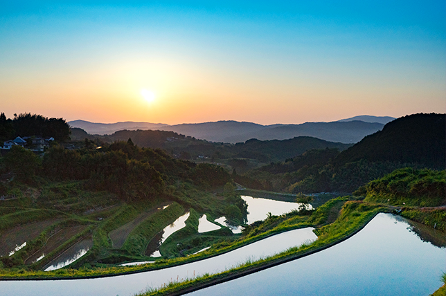 浄土宗の宗祖、法然上人の生家跡に1193年に建てられた由緒ある誕生寺や棚田百選2ヶ所を有する美しい田園風景も広がっています。