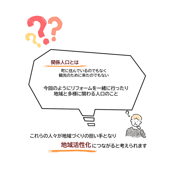 大学生と一緒にアイデアを出しながら改装を行います。みんなで一緒にリフォームを行うことで大学生同士の交流の場になっているだけでなく、大学生活だけでは経験できない学びの場になっています。リフォームを行うことで、地域の様々な年代の人達と交流をし、大学の授業だけでは得られない、生きていくために必要なスキルを身に着けることができるいい機会になります。このように実際に足を運んでもらうことで、久米南町を身近に感じてもらうことができ、知っている人達がいることで、プロジェクト終了後も久米南町に訪れるきっかけになり、将来移住の可能性に繋がります。