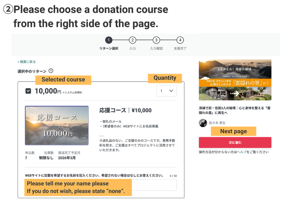 ・(希望者のみ)「雲隠れの里」内ドナーウォールにお名前掲載