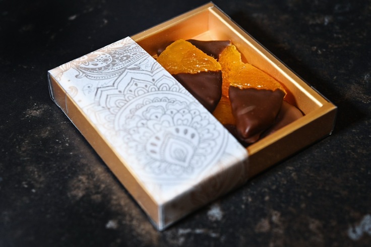 使うのは、無農薬で徳島の山奥で育ったゆずの厚い皮。ひと切れずつ丁寧に並べ、何日もかけてじっくり乾燥させ、ゆっくりシロップに漬け込みます。十分に休ませたのち、香りを閉じ込めるように、たっぷりのチョコレートでコーティング。出来上がりまでに約1か月。時間と手間を惜しまず、少しずつ、少しずつ仕上げていくお菓子です。ひとつ頬ばれば、立ちのぼる柚香とほろ苦さ、カカオの余韻がふわりと口の中に広がります。