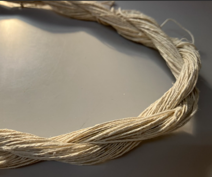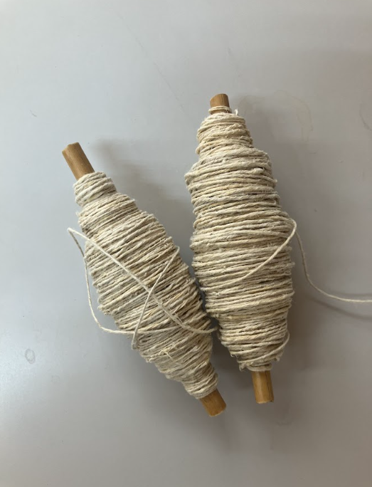 ※一つの名刺入れに使う糸をよるのにかかるのは約10時間。その後、職人が丁寧に織り、縫い上げて、手で藍染めをして完成します。