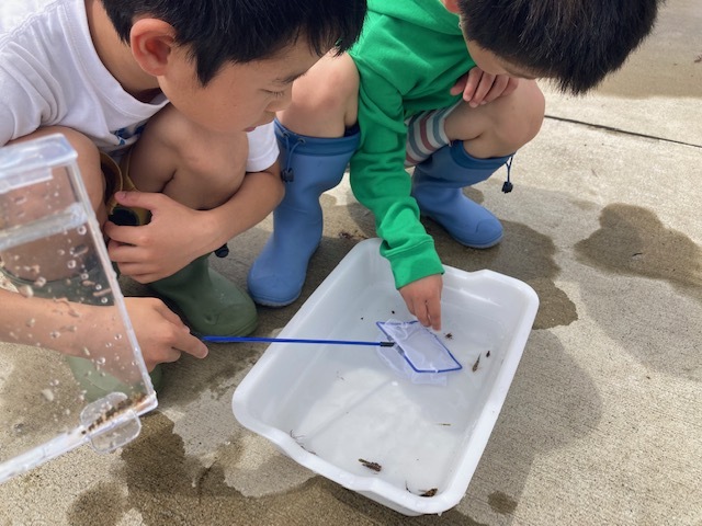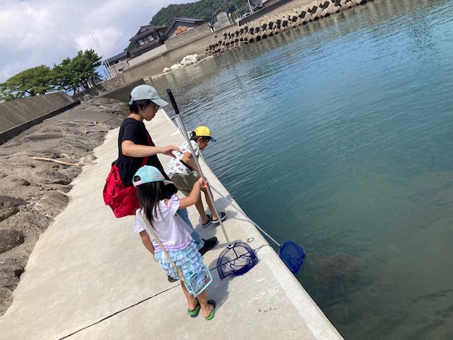 この体験企画の一つ「漁港のいきもの探し」では、目の前の漁港で網などを使って生き物を探します。