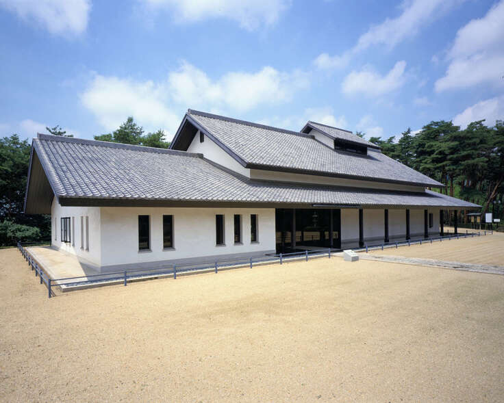 施設は、山を借景とした立地と、四季折々の自然が感じられる庭園の佇まい、そして複数の展示館からなる建物群の調和に配慮して設計されました。カフェやミュージアムショップも併設しており、ゆったりと時間をかけてご見学いただけます。