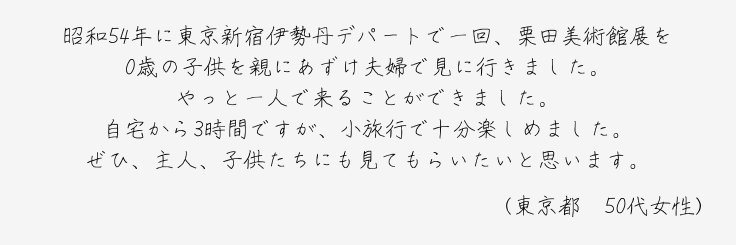 また、当館は、創立者・栗田英男の「美術品は個人で所有するものではなく、公益に資するものである」という趣意のもと、1975年に開館し、今年で創立50周年を迎えます。
