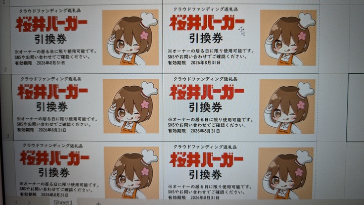 【「桜井バーガー」引換券】および【「レンタルレイアウトさくらい駅」利用券】をご希望の方には、引換券を郵送いたしました。ご利用の際に、ちぎってお渡しください。