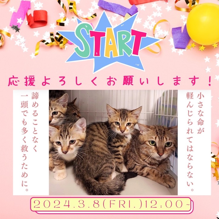 先日ご案内した「どんな命にも、幸せになる権利がある。猫の命を守る活動継続にご支援を」クラウドファンディングプロジェクトの再挑戦が本日から開始しました!!!