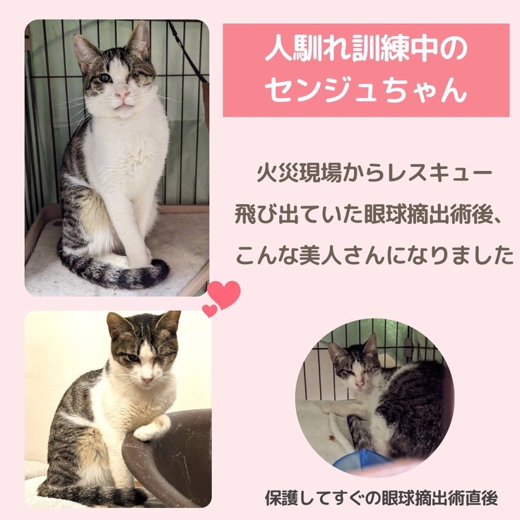 センジュは、白血病キャリアでもあり、お外暮らしが長かったため人慣れもしておらず