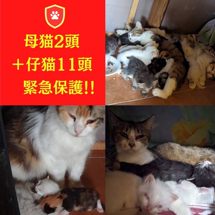 【母猫2頭+生後7日〜40日の仔猫11頭を緊急保護!!!】