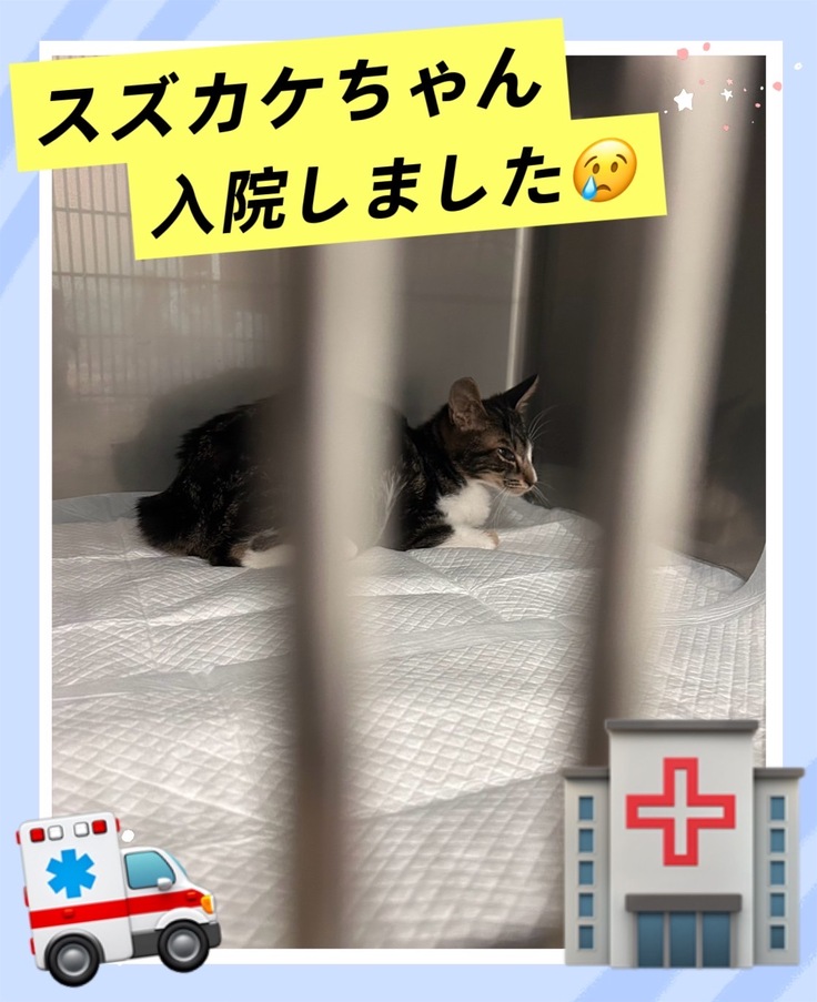 スズカケは、まだ小さな仔猫のため体力もありません…