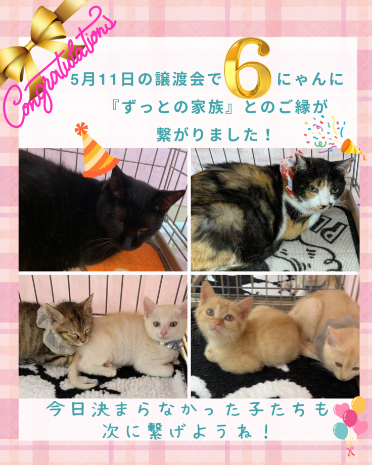 里親のみなさま、可愛いくすのキャッツたちをよろしくお願いします🐱💐