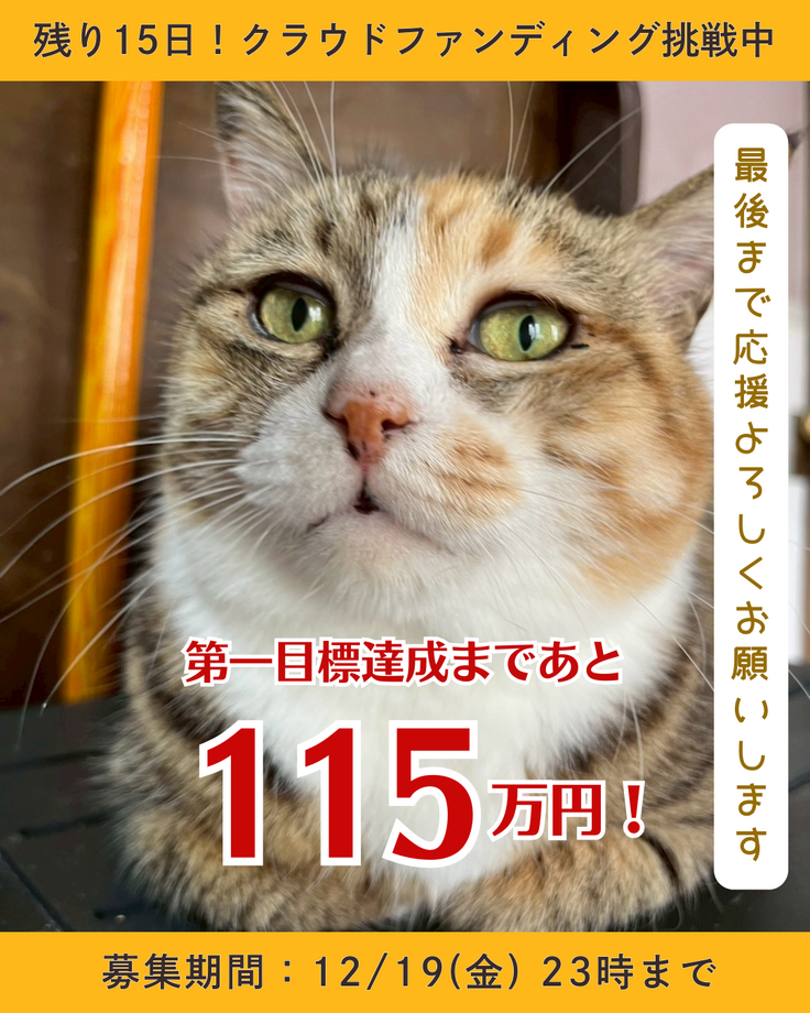 そうした事から現在、くすのきではこうした救済をした猫達にかかる医療、飼養費のためクラウドファンディング に挑戦中です🔥