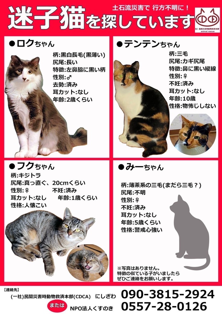 現在もCDCA民間災害時動物救済本部の皆様のご協力のもとレスキューをしていただいており、受け入れとTNRも継続中です。