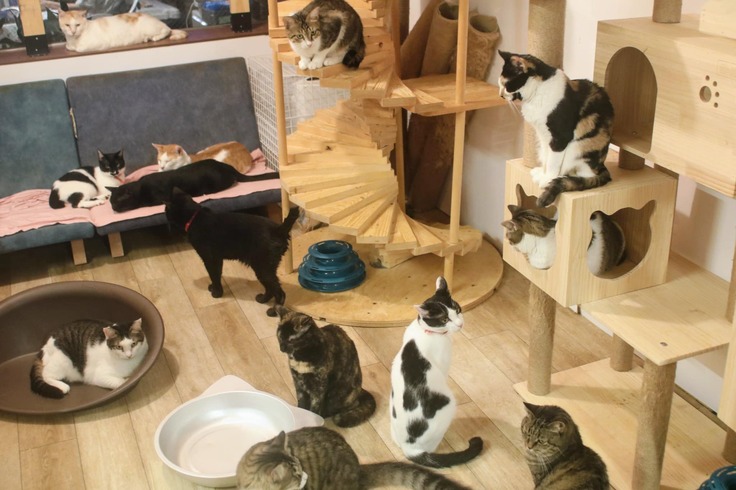 2004年に活動をはじめてから、伊豆の熱海を基盤に、飼い主のいない猫ちゃんを保護しています。 2015年に私が仲間3人と立ち上げた東京で行われる譲渡会「ねこざんまい」や、譲渡型ねこハウス「Temple Cat」で里親さんたちに猫ちゃんたちを縁組しています。