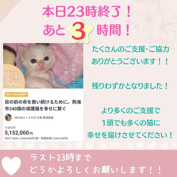 どうか最後まで皆様の温かいご支援と応援をくすのきニャン′ずへお願いいたします🙇♀️