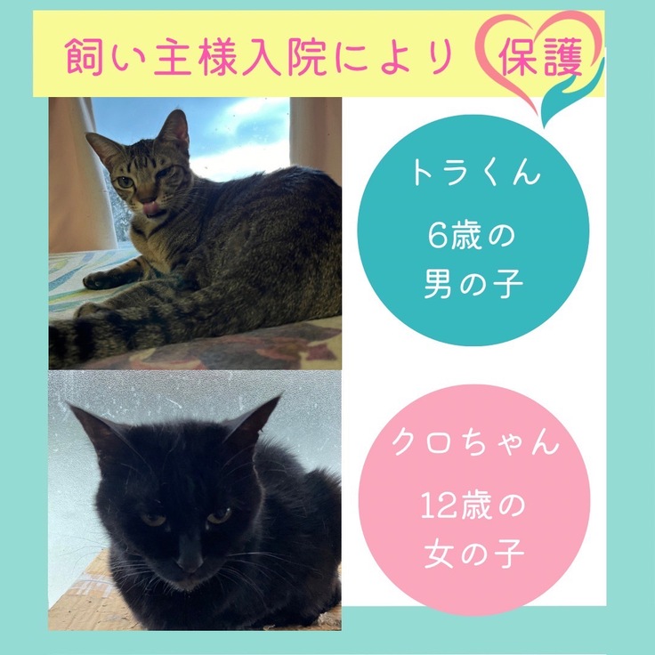 飼い主さんが安心されるよう、トラとクロが終生穏やかに猫生を全う出来るように過ごさせてあげたいとの思いでおります。