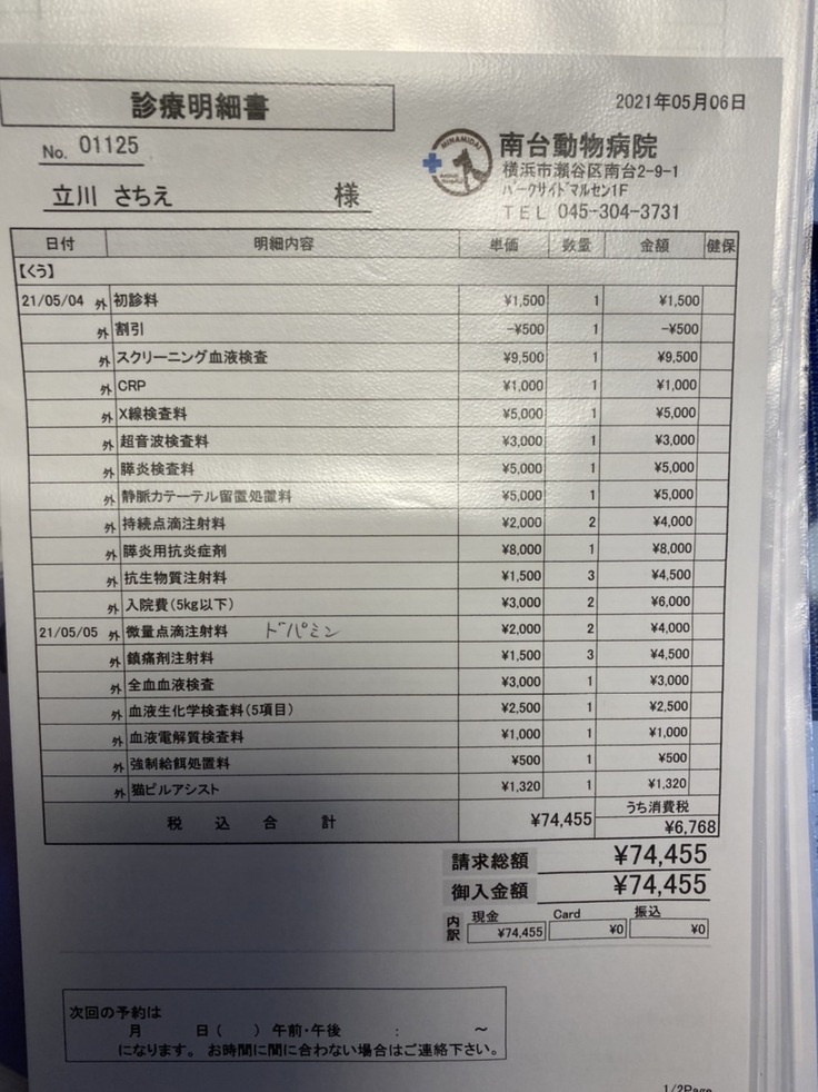 くうの治療費の援助をいただけたら、早急に手術や治療に充てたいと思います。