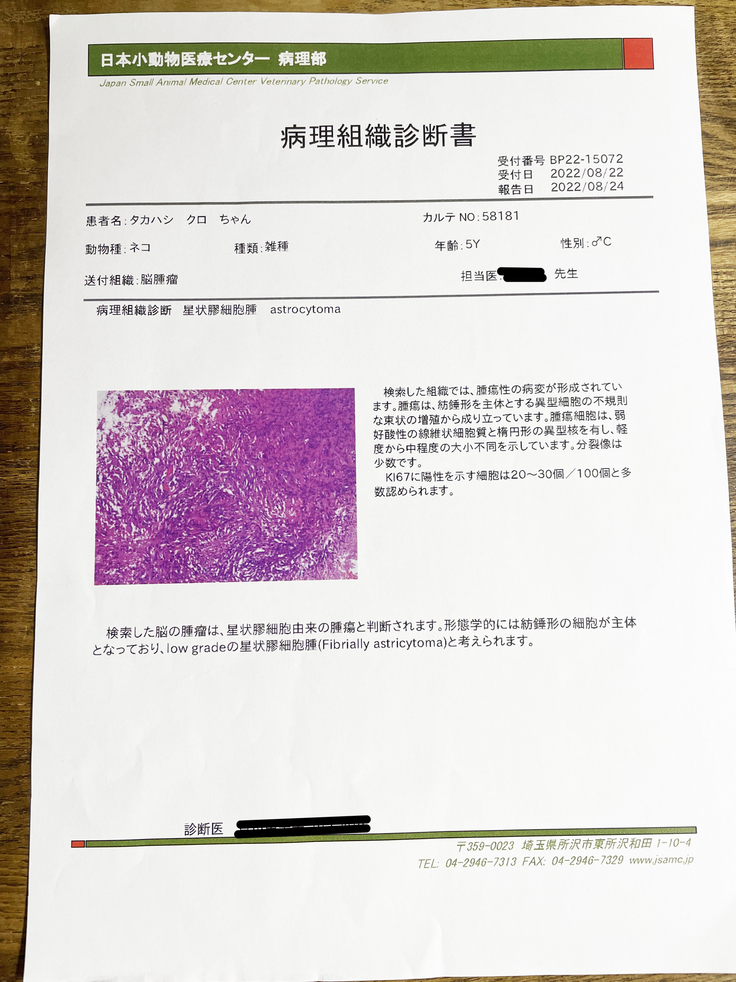 腫瘍の病理確定診断の結果も出ていましたが、結果は2通あり悪性グリオーマ(グレード