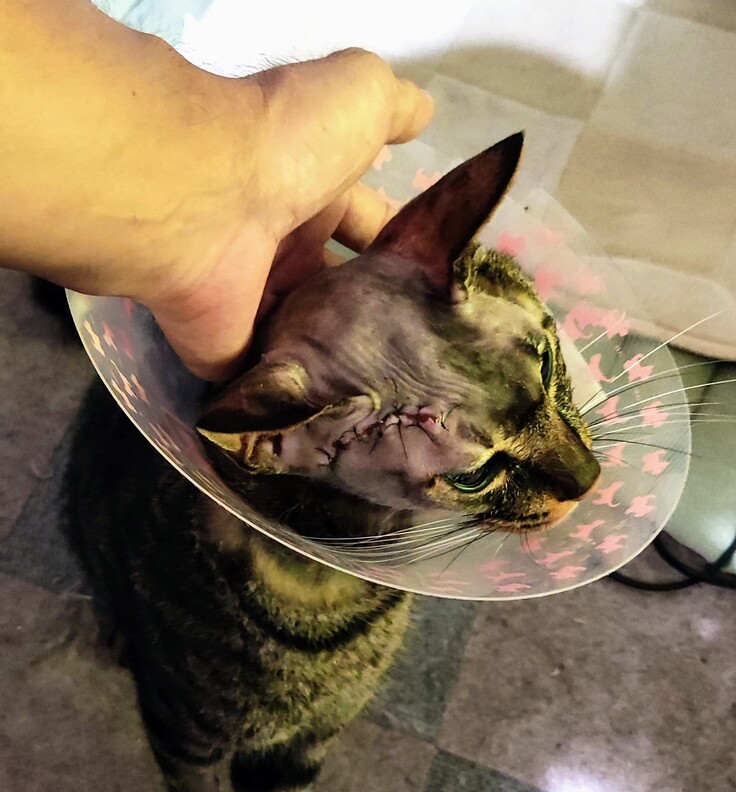 大きな傷跡が痛々しいですが、病気中よりはだいぶ生気がみなぎっているようです