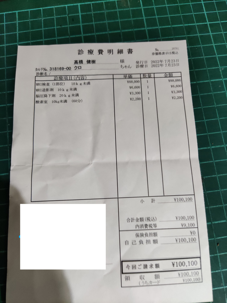 このようなことでしたが、くーちゃんの体力の回復具合を考慮し、また再び高額な費用がかか