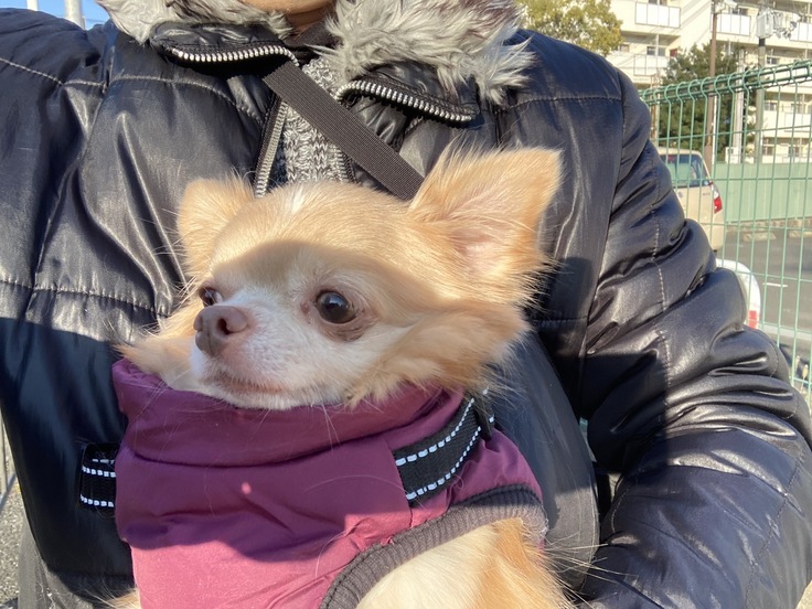 祝日ですが私は仕事で、パパさんがくうちゃんを抱っこして散歩に連れて行ってくれたみたいですが、震えて鼻水がすごかったみたいで💦😱