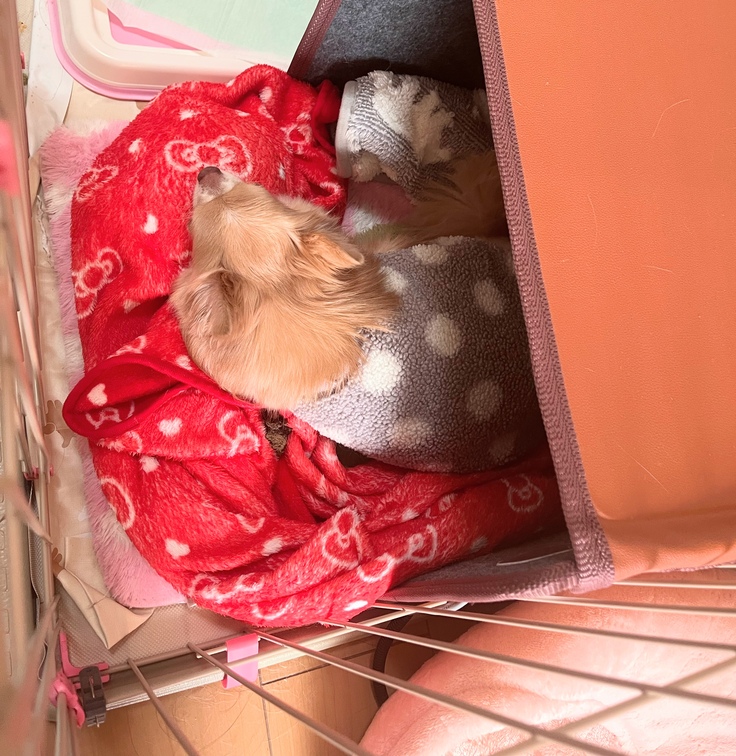 今日のくうちゃんは、暖かいところでスヤスヤとお昼寝しております😴