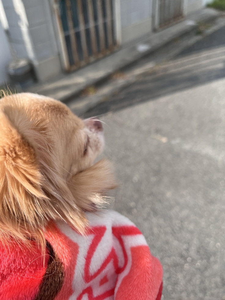 今日はお昼間にくうちゃんを抱っこでお散歩に連れて行きました。
