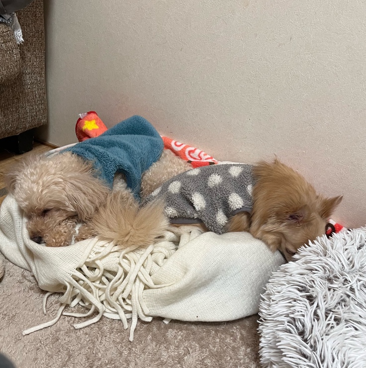 お散歩の後、仲良く2匹でお昼寝をしていました😴🩷